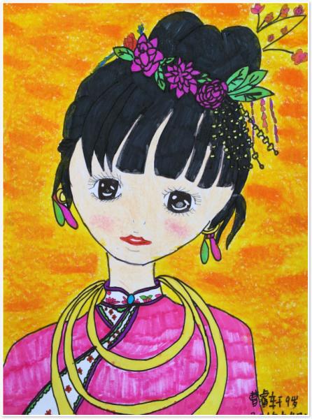 第六届兰亭奖获奖作品 曹睿轩 9岁《少数民族女孩》辅导老师:岳松涛